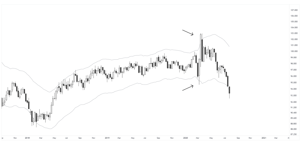 Markets can be evaluated relative to their recent or average behavior. Price movement within these bounds is considered normal, while a notable move beyond them is referred to as a deviation. This is interpreted as an overextension, where indicators tend to show overbought or oversold values.