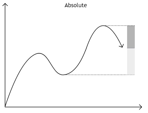 These thresholds can be used to define what counts as a significant move in absolute terms, for example a price that has moved up or down at least 20% over the past month. This method is less standardized across markets.